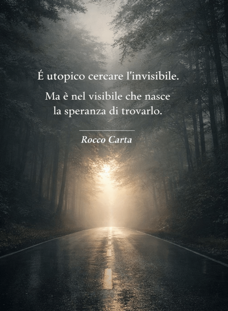 blog Aforisma 8 È utopico cercare l’invisibile.Ma è nel visibile che nasce la speranza di trovarlo. Rocco Carta Condividi: Condividi su X (Si apre in una nuova finestra) X Condividi su Facebook (Si apre in una nuova finestra) Facebook Mi piace Caricamento...