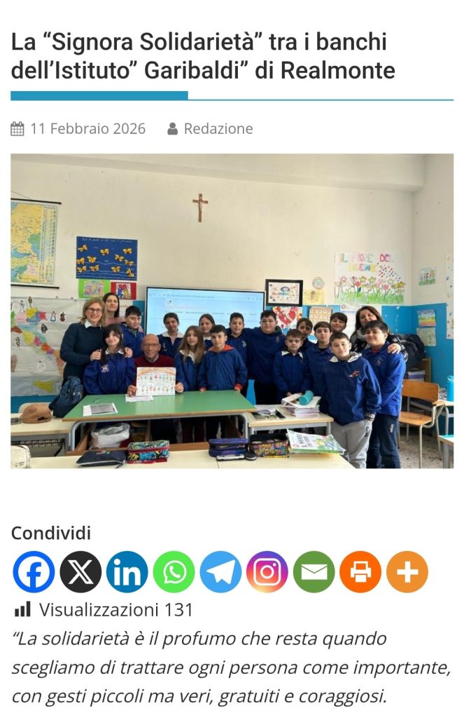 4 pensieri su “La “Signora solidarietà” tra i banchi dell’Istituto “Garibaldi” di Realmonte