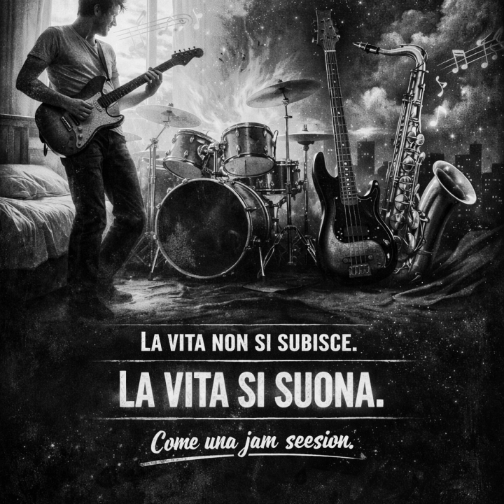 Alzati,mentre un riff di chitarra elettrica accende il mattino. Attraversa la giornataal ritmo ostinato di un rullo di batteria. Arriva a sera,sospinto da una linea di … Continua a leggere La jam session della vita